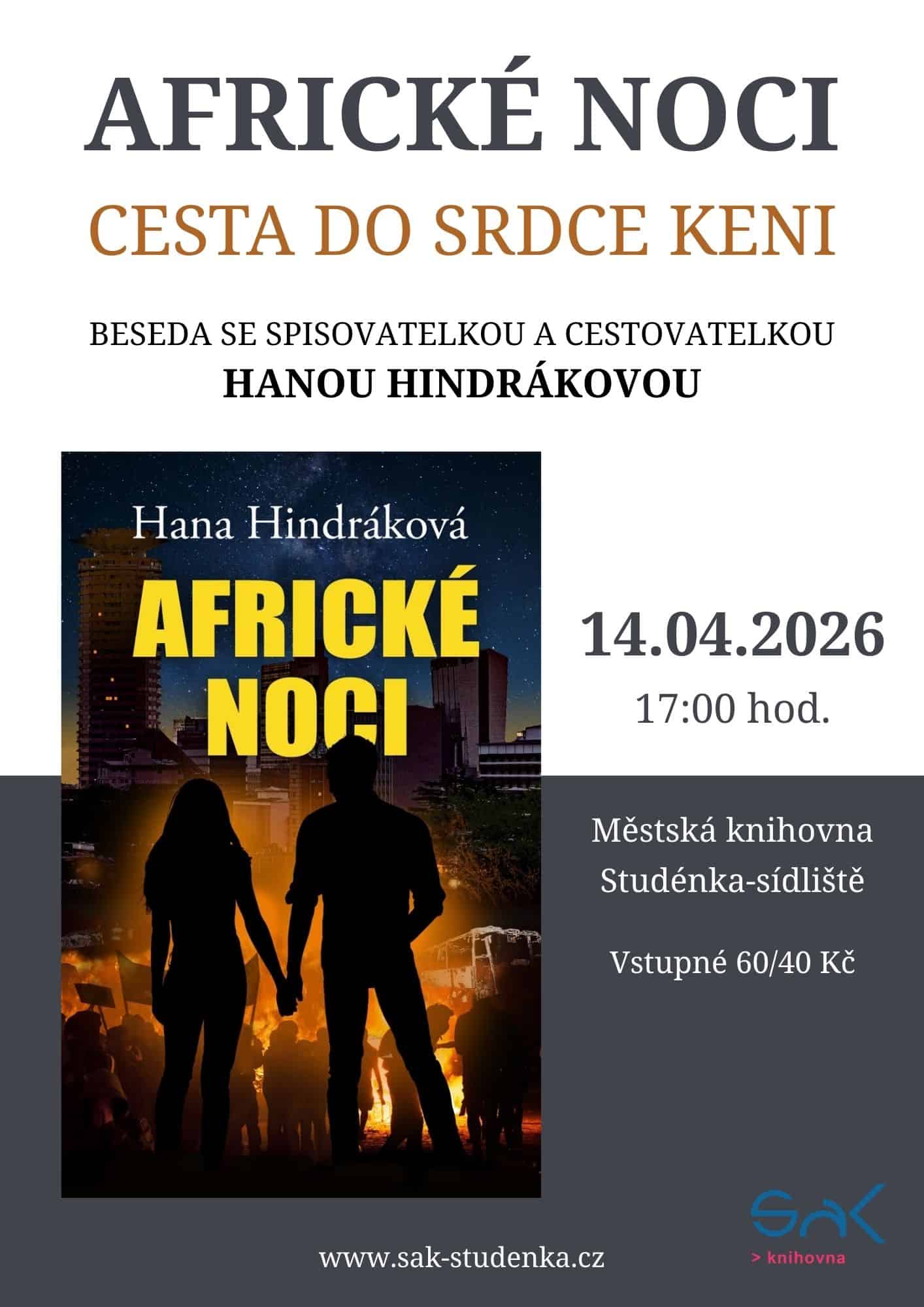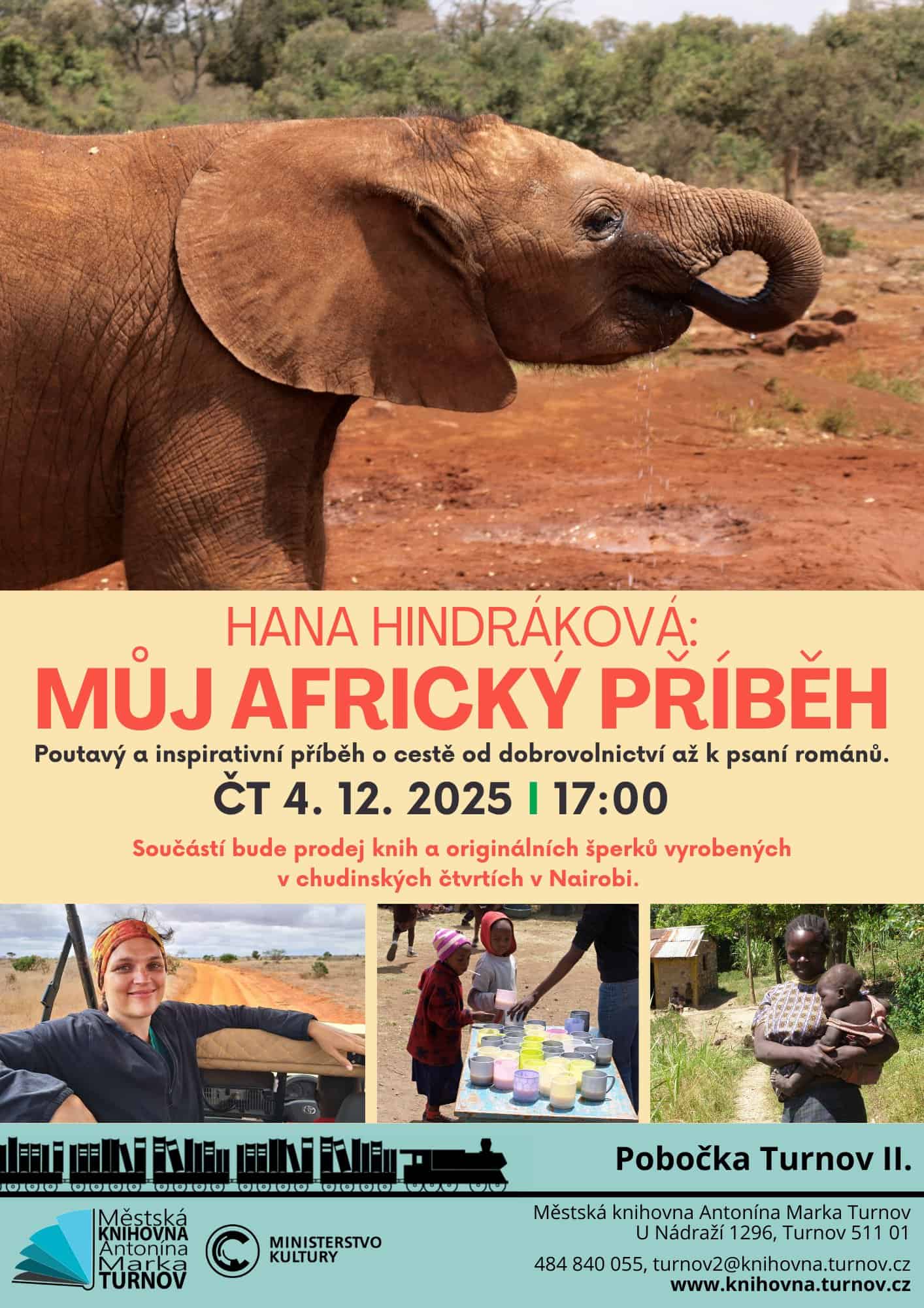 Hana Hindráková nabízí besedy o Africe a o svých knihách pro knihovny, pro základní i střední školy, pro kulturní centra, pro firmy i pro domovy pro seniory.